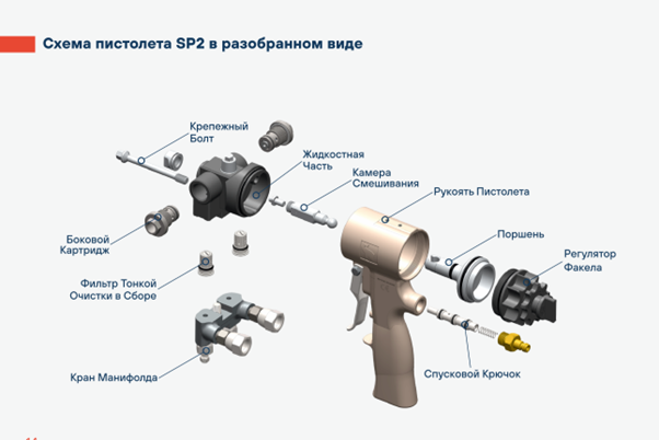 Распылительный пистолет Pusmak SP2 с воздушной продувкой - это легкий и долговечный пистолет-распылитель, предназначенный для напыления пенополиуретана и полимочевины.